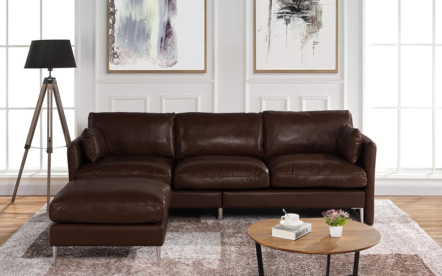 Turner Roll Arm Leather 3 Piece L Shaped Sectional