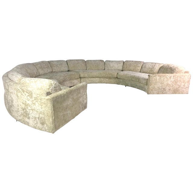 Adrian Pearsall Semi Circular Ivory Crushed Velvet Curved Sectional Sofa