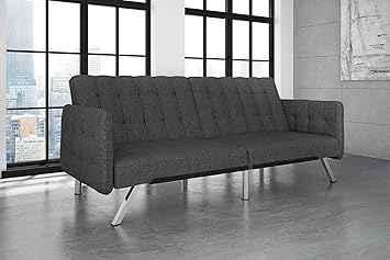 Dhp Emily Convertible Futon And Sofa Sleeper Modern Style With Tufted Cushion Arm Rests And Chrome Legs Quickly Converts Into A Bed Grey Linen