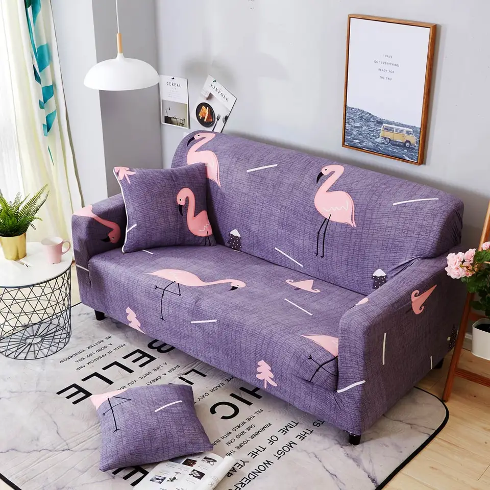 2018 Pink Flamingo Purple Stretch Elastic Chair Loveseat L Shape Sectional Sofa Cover Slipcover Spandex Polyester Corner Sofa