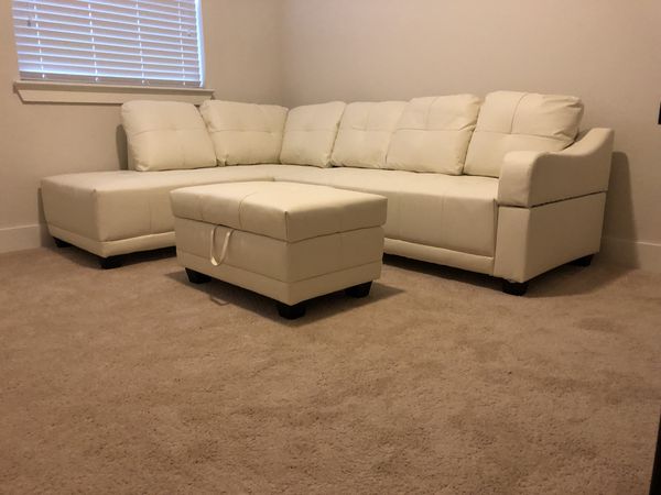 Large White Bonded Leather Sectional Sofa Couch 3 Piece W