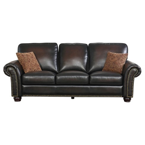 Trenton Bonded Leather Pushback Sofa Dark Brown Abbyson Living