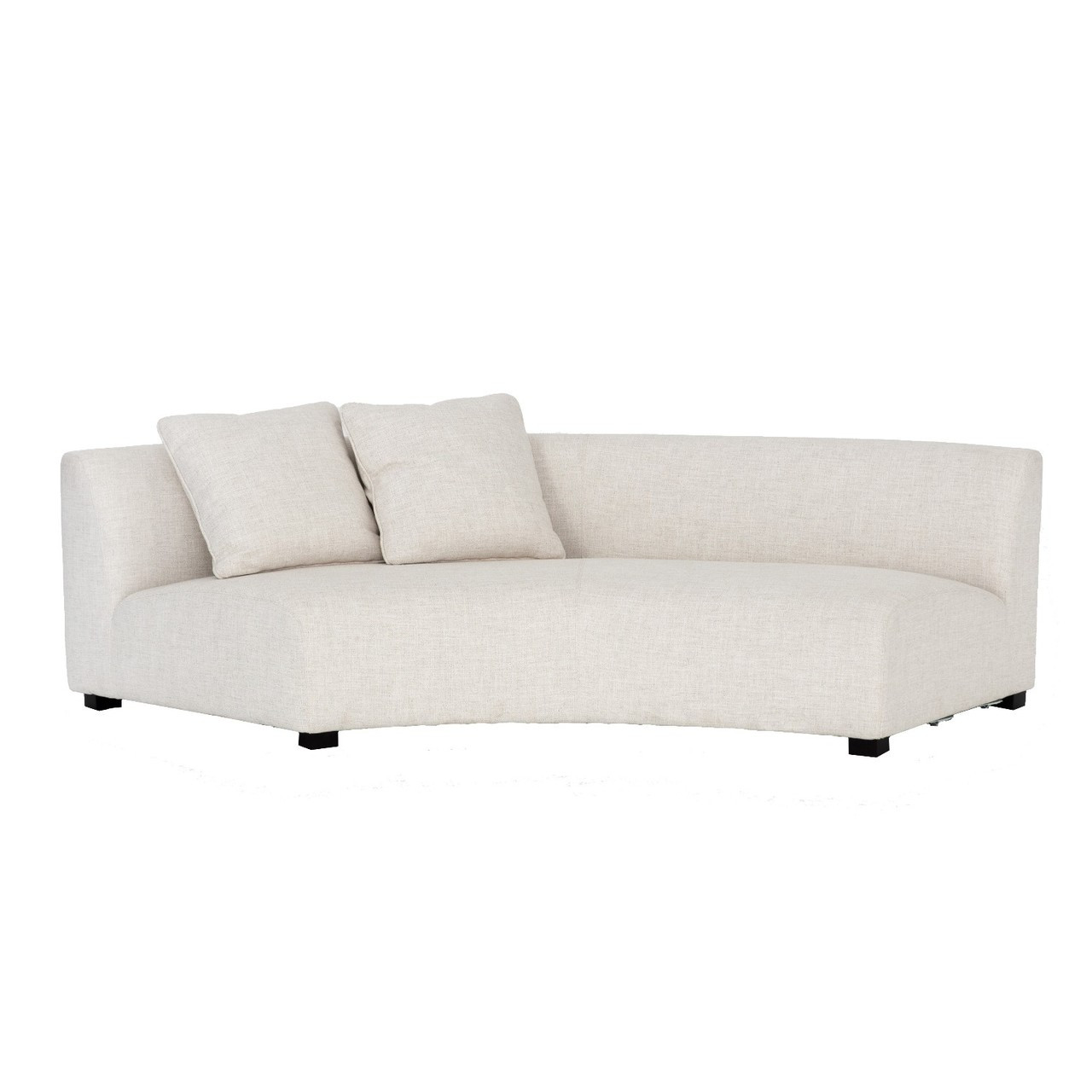 Zoe Modern Classic Curved Crescent Shape Cream Upholstered 2 Piece Sectional