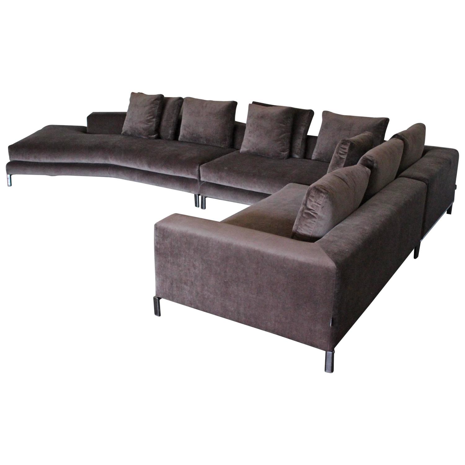 Minotti Allen Sectional L Shape Sofa In Taupe Brown Velvet