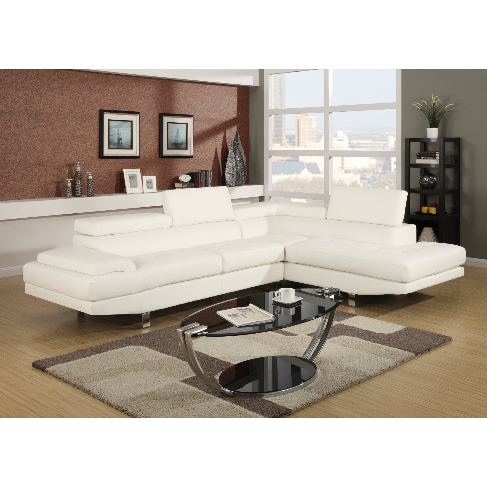 Selma White Leather Modern Sectional Sofa Walmart Com