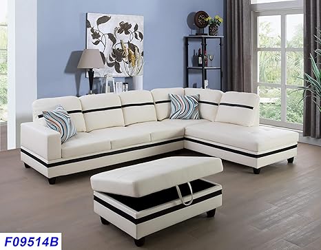Beverly Fine Funiture F09514b 3pc Sectional Sofa Set White And Black