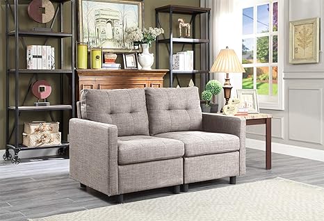 Modular 2 Piece Sectional Sofa Loveseat Linen Fabric Living Room Furniture Interlocking Sofa Set 2 Piece Loveseat