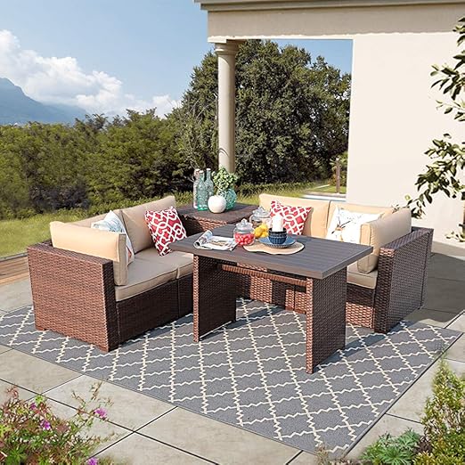 Kinsunny 5 Piece Pe Wicker Rattan Sofa Set Outdoor Patio Sectional Sofa Furniture Set With Table 2 Pieces Box