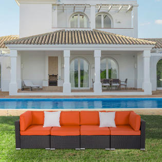 Kinsunny 4 Piece Sectional Sofa Wicker Rattan Sofa Set