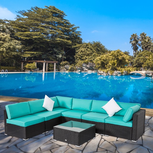7 Pc Rattan Wicker Sofa Set Sectional Indoor Patio Cushioned Garden Outdoor