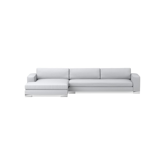 Yountville Sectional Left 2 Piece Sofa With Wide Chaise Standard Cushion Brushed Canvas White Metal Feet