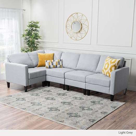 Carolina Sectional Sofa Set 5 Piece Living Room Furniture Light Grey