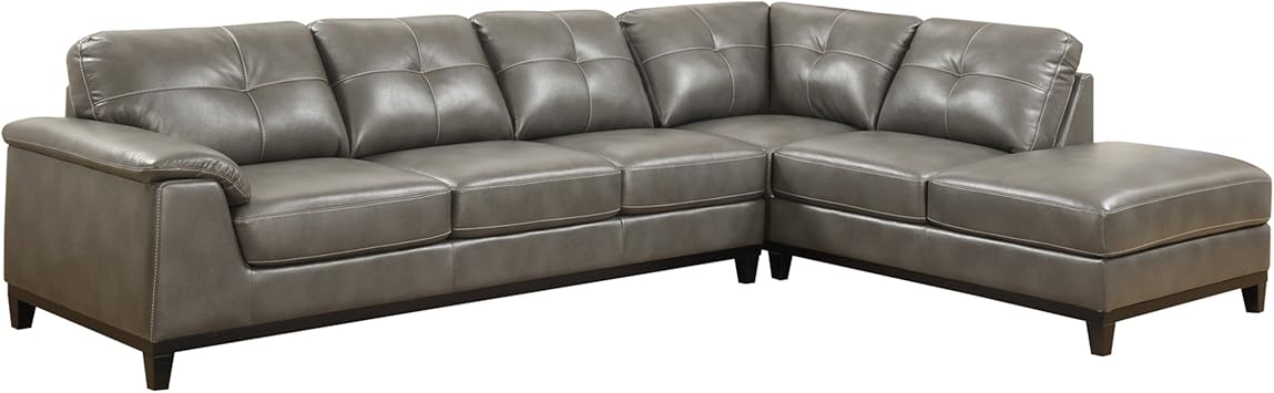 Emerald Home Marquis Gray Sectional With Faux Leather Upholstery Padded Arms And Contrast Stitching