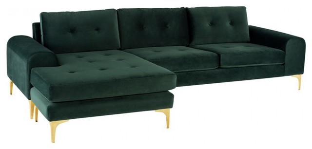 Colyn Sectional Sofa In Tufted Emerald Green Fabric On Gold Stainless Steel By Nuevo Modern Furniture