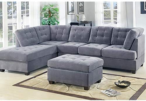 Casa Andreamilano 2 Piece Modern Grey Soft Tufted Micro Suede Sectional Sofa Couch With Reversible Chaise Ottoman L Shaped Sectionals Grey
