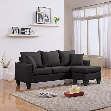 Divano Roma Furniture Modern Linen Fabric Small Space Sectional Sofa With Reversible Chaise Dark Grey