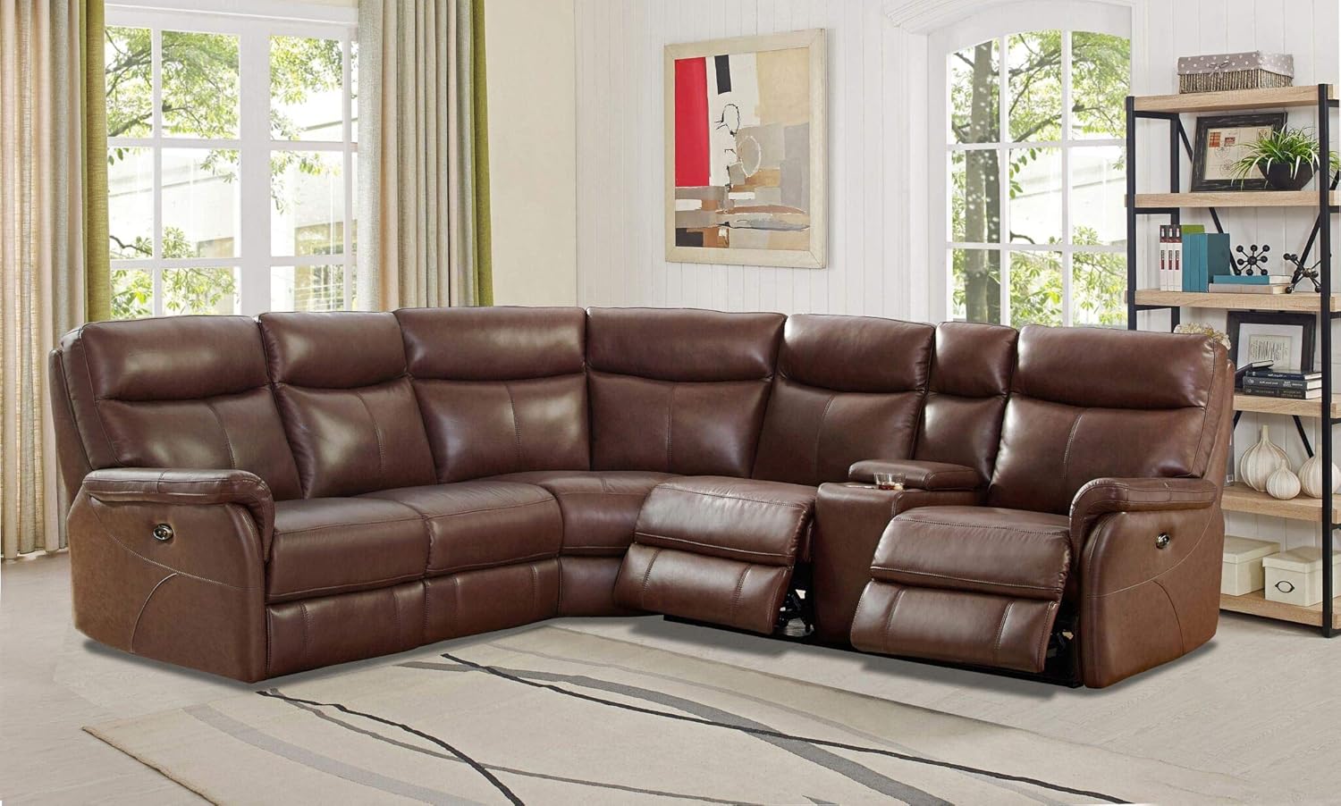 Hydeline Alta Leather 3pc Power Reclining Sectional With Builtin Usb Ports Brown