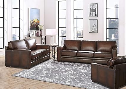 Hydeline Dillon 100 Leather Sofa Set Sofa Loveseat Chair Brown