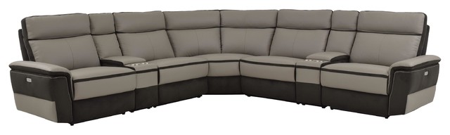 7 Piece Liberman Power Sectional No Power Chair Leather Fabric Gray Confa