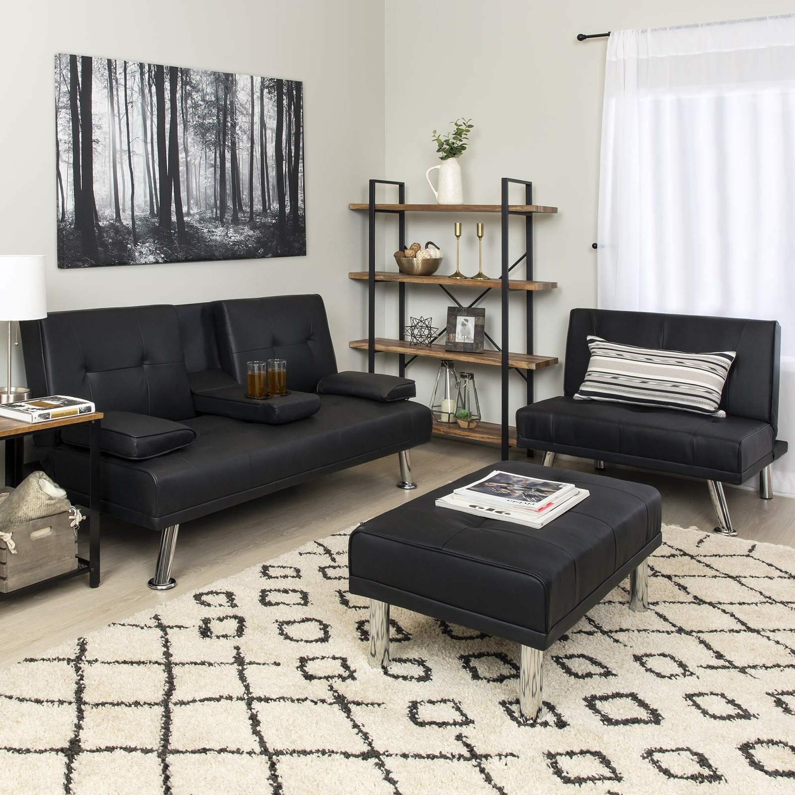 3 Piece Leather Modular Living Room Sectional Set Sleeper Sofa Bed Double Futon