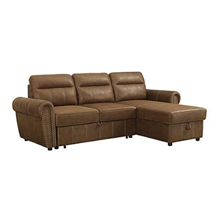 New Downtown Brown Leatherette Sectional Sofa Bed With Storage