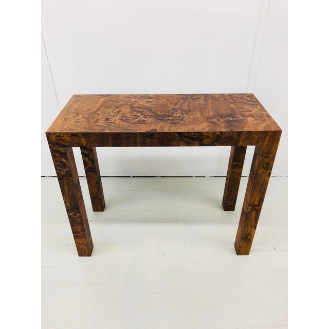 1960s Mid Century Modern Faux Burled Wood Parsons Console Sofa Table