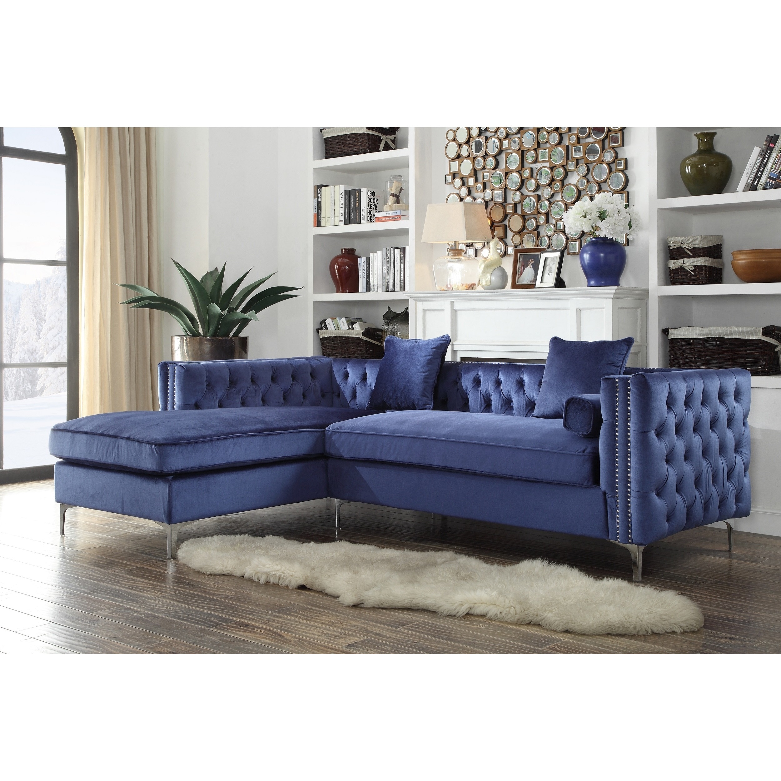 Picasso Velvet Right Facing Sectional Sofa Button Tufted With Silver Nailhead Trim Silvertone Metal Y Leg