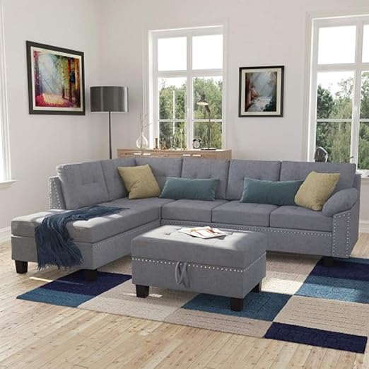 Harper Bright Designs 3 Piece Sofa Sectional With Chaise Lounge And Storage Ottoman Sofas Couch For Living Room Silver Grey