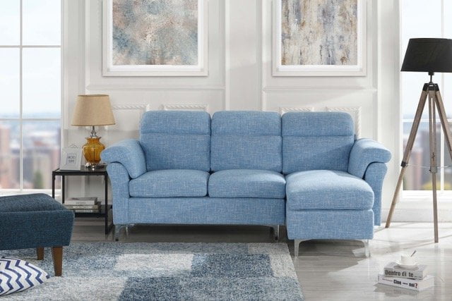 Modern Linen Fabric Sectional Sofa Small Space Couch Light Blue Walmart Com
