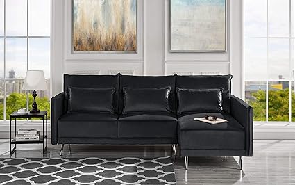 Midcentury Upholstered 88 1 Inches Velvet Fabric Sectional Sofa Black