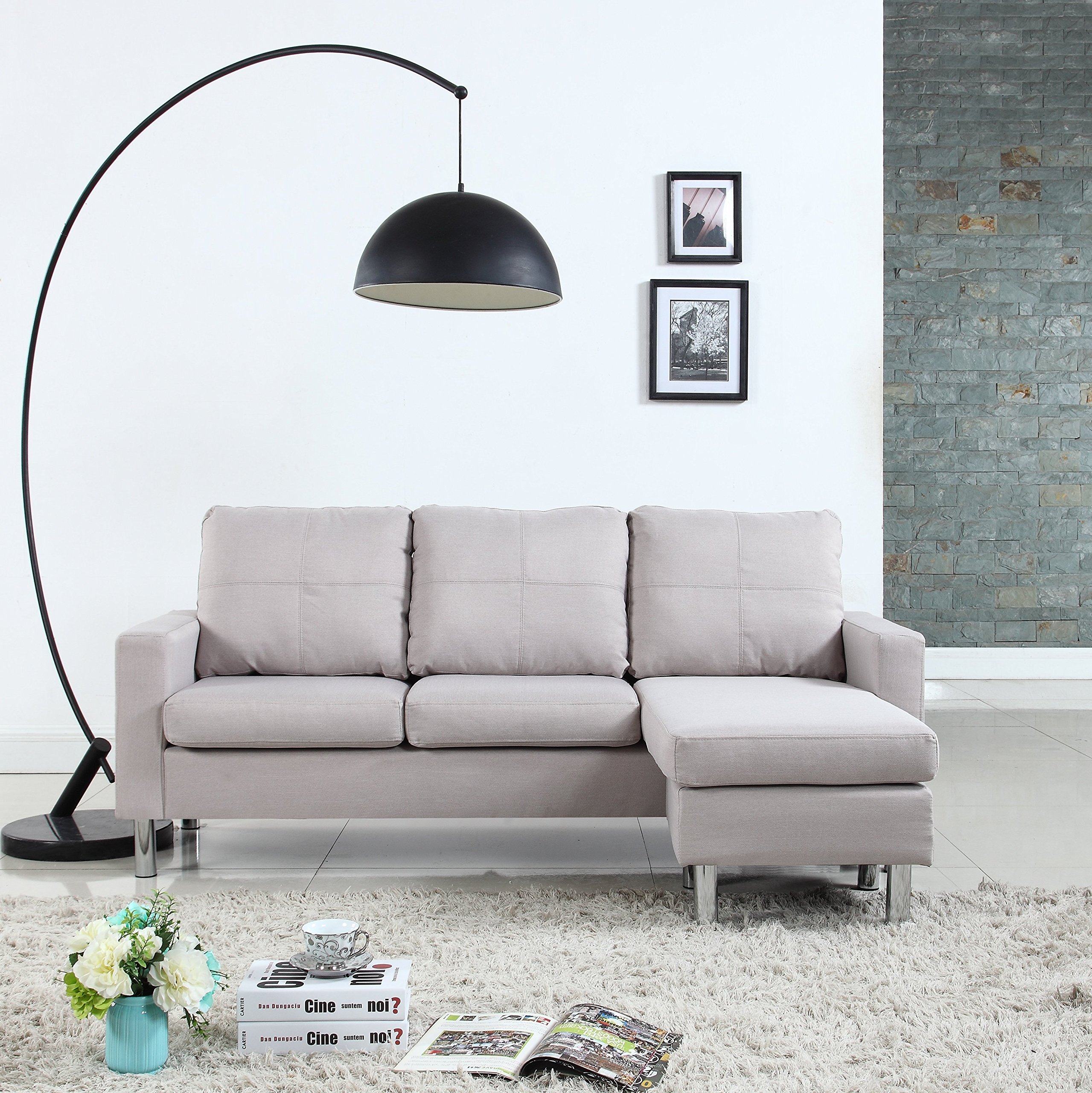 Contemporary Linen Fabric Sectional Sofa Small Space Couch