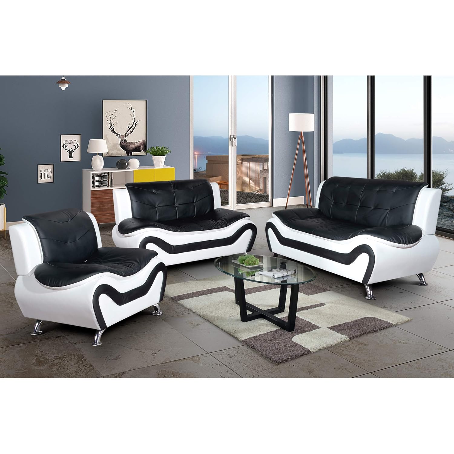 Amazon Com Aycp Furniture Decorative Blk White Sofa Set
