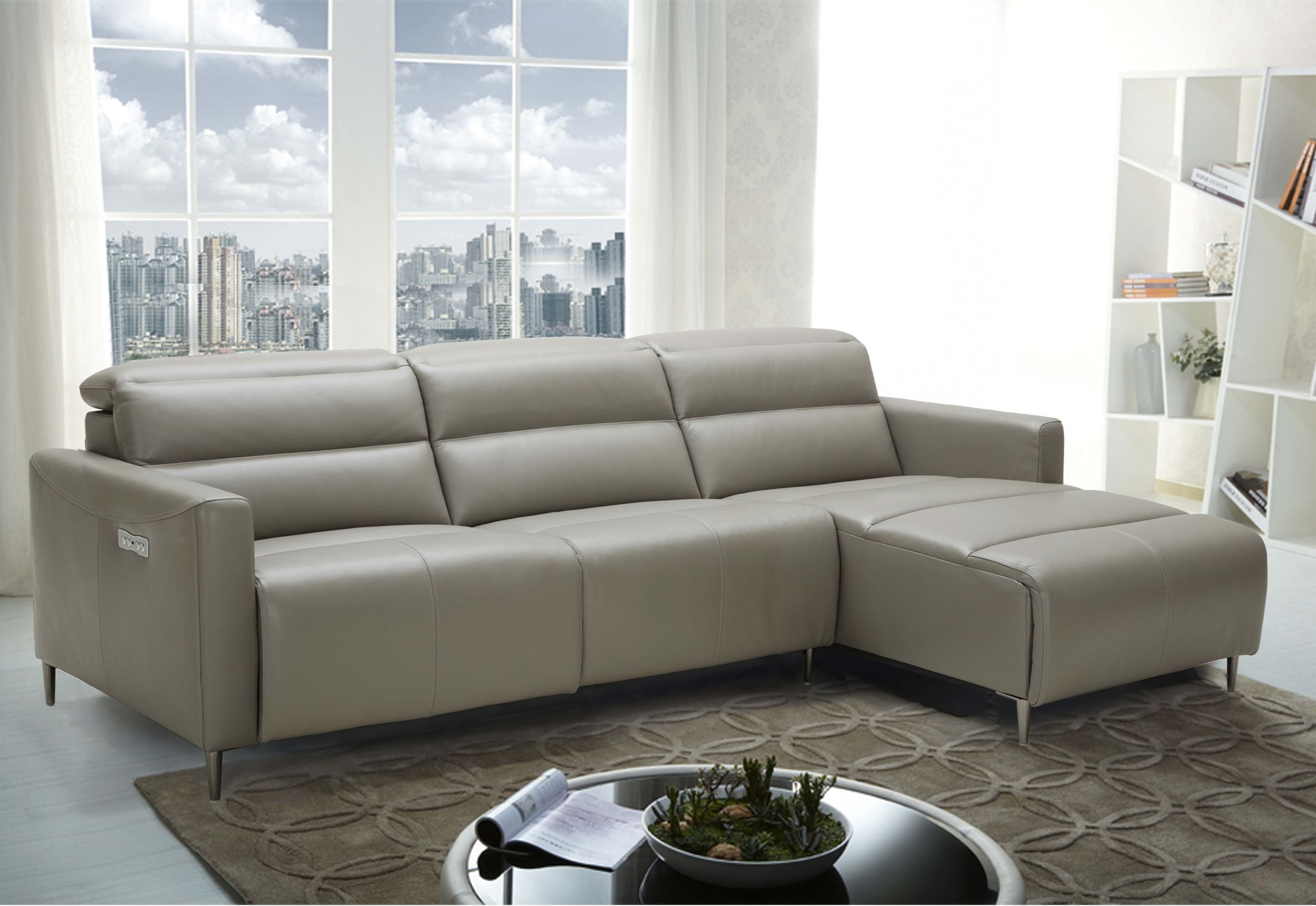 Homelegance Breaux Modern Track Arm Sectional With Chaise And Chrome Legs Accents Gray