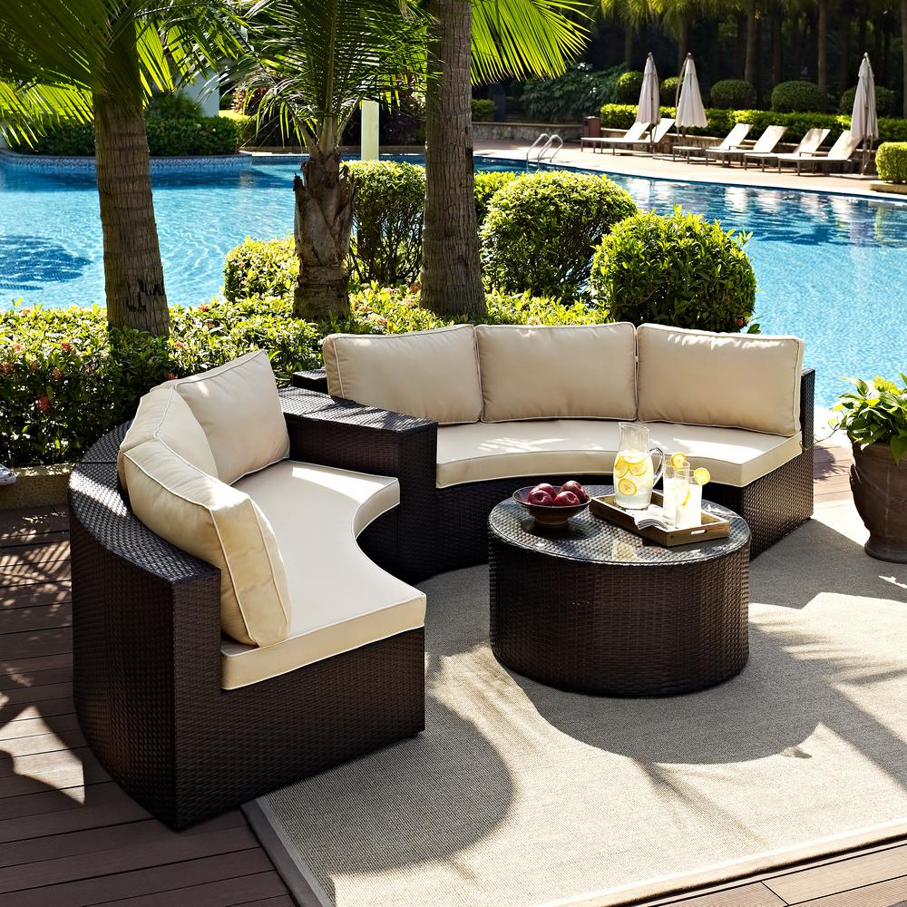 Catalina Outdoor Wicker Round Sectional Sofa W Sand Cushions By Crosley