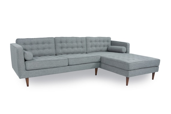 Mid Century Tufted Modern Danish Style Sectional Sofa With Walnut Legs Reversible Back Cushions L Shaped Contemporary Style Corner Couch