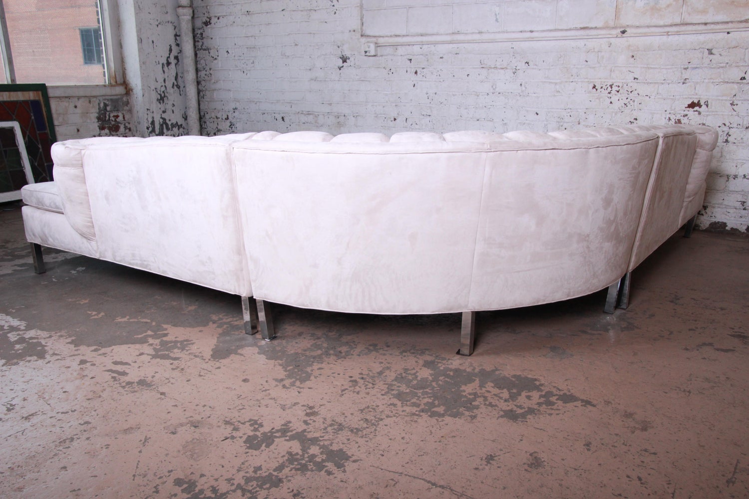 Modern Three Piece Curved Sectional Sofa On Chrome Legs At