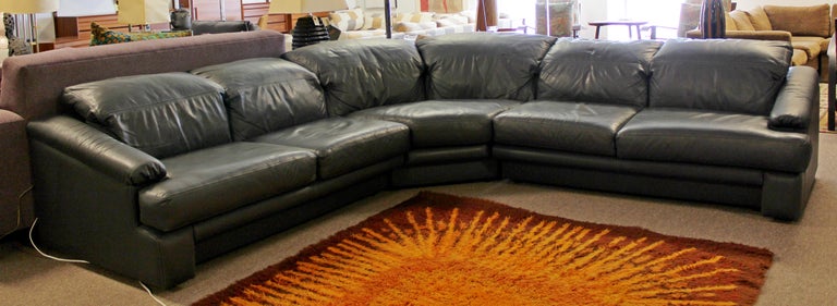 Contemporary Modern Kagan Style 3 Pc Curved Sectional Sofa 1980s Gray Black