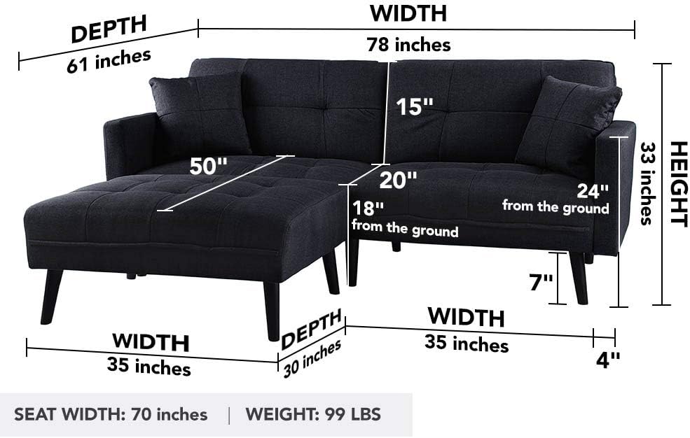Sofamania Mid Century Modern Linen Fabric Futon Small Space Living Room Couch Black