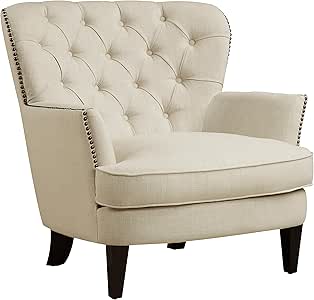 Pulaski Button Tufted Upholstered Accent Chair In Celine Flour With Antique Nailhead Medium White