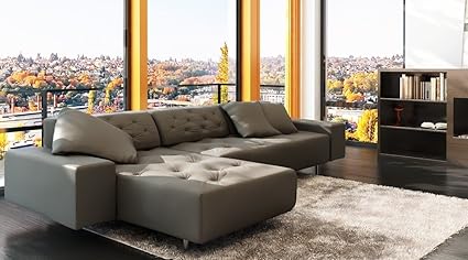 Amazon Com Modern Button Tufting Leather Sectional Sofa