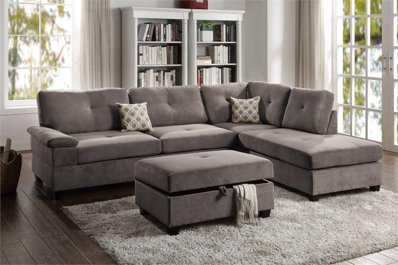 3 Pc Canterbury Sectional Sofa Set In Charcoal Finish