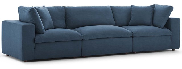Commix Down Filled Overstuffed 3 Piece Sectional Sofa Set Azure
