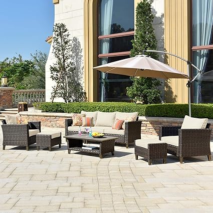 Ovios Patio Furnitue Outdoor Furniture Sets High Back Wicker Patio Furniture Sectional With Table And Waterproof