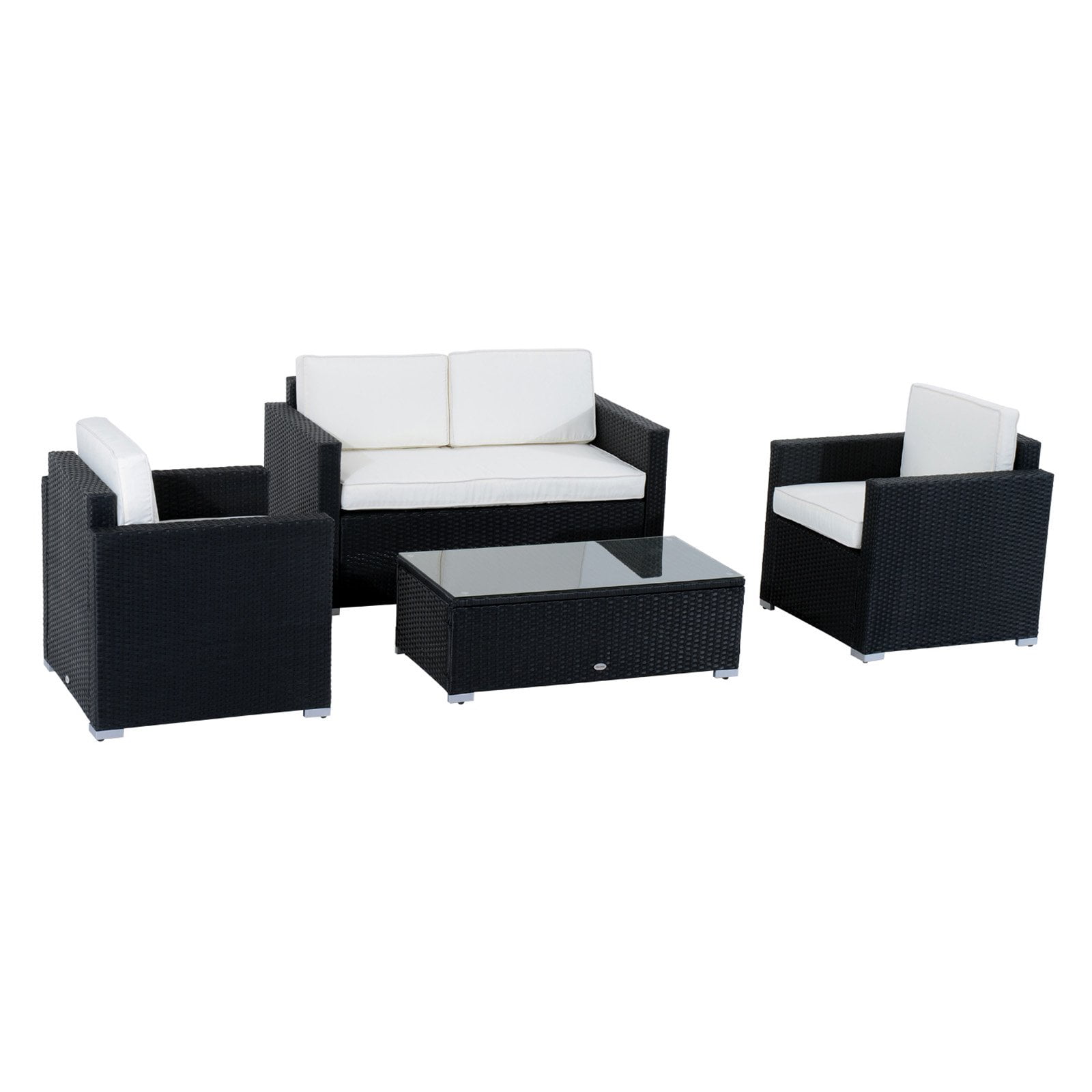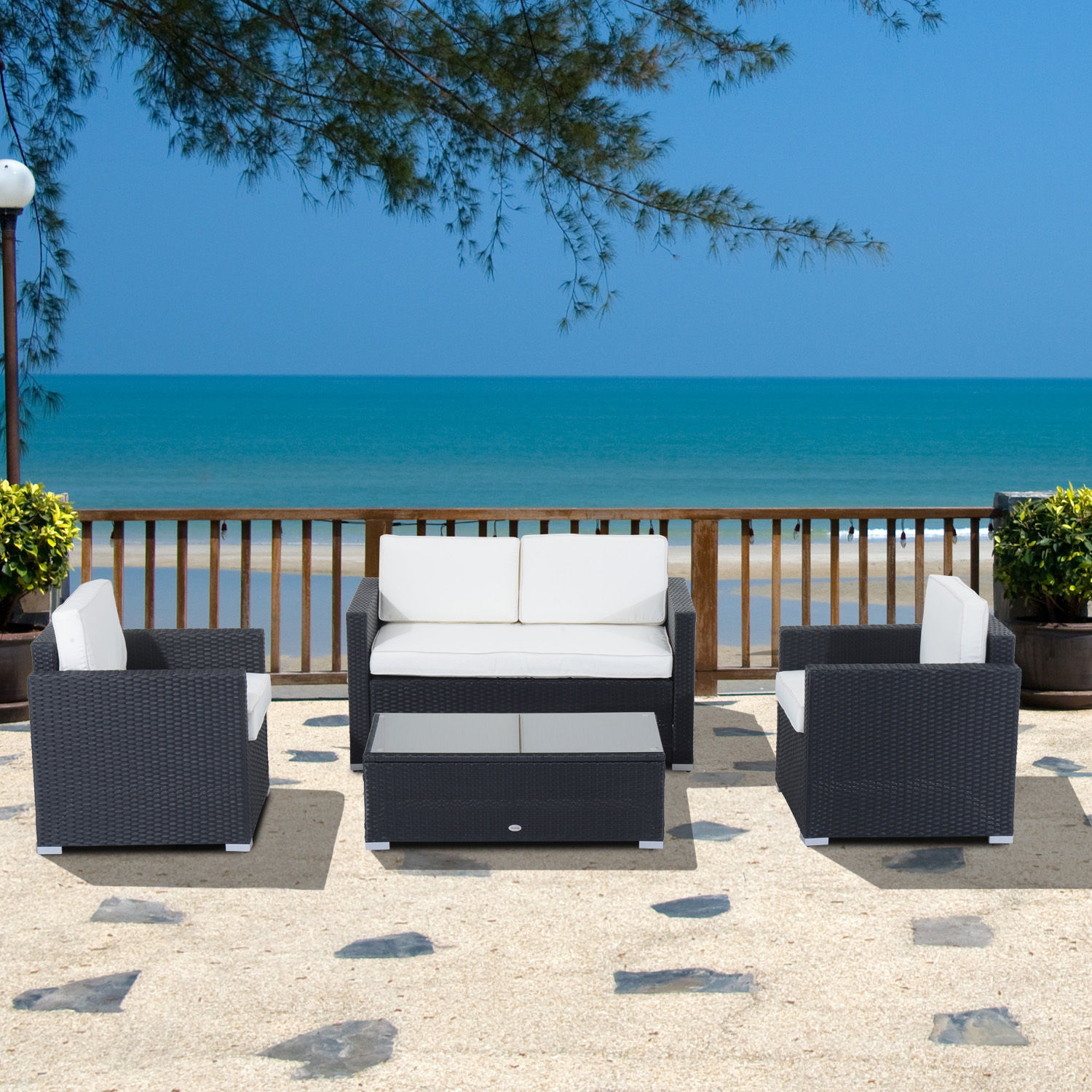 Outsunny 4 Piece Cushioned Outdoor Rattan Wicker Sofa