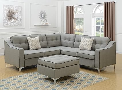 Essick 52765 Mid Century Modern Grey Sectional Sofa