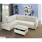 Beverly Fine Furniture Left Facing Russes Sectional Sofa Set With Ottoman White