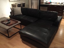 Poundex F6864 Black Top Grain Leather Sectional Sofa Set For