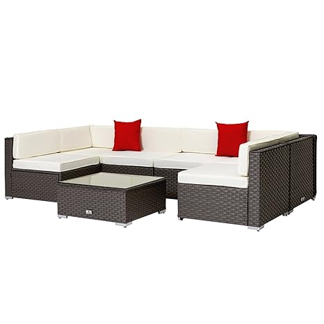 Homall 7 Pieces Outdoor Patio Furniture Sofa Set All Weather Pe Rattan Wicker Sectional Sets Modern Modular Couch Outside Conversation Set With Thick