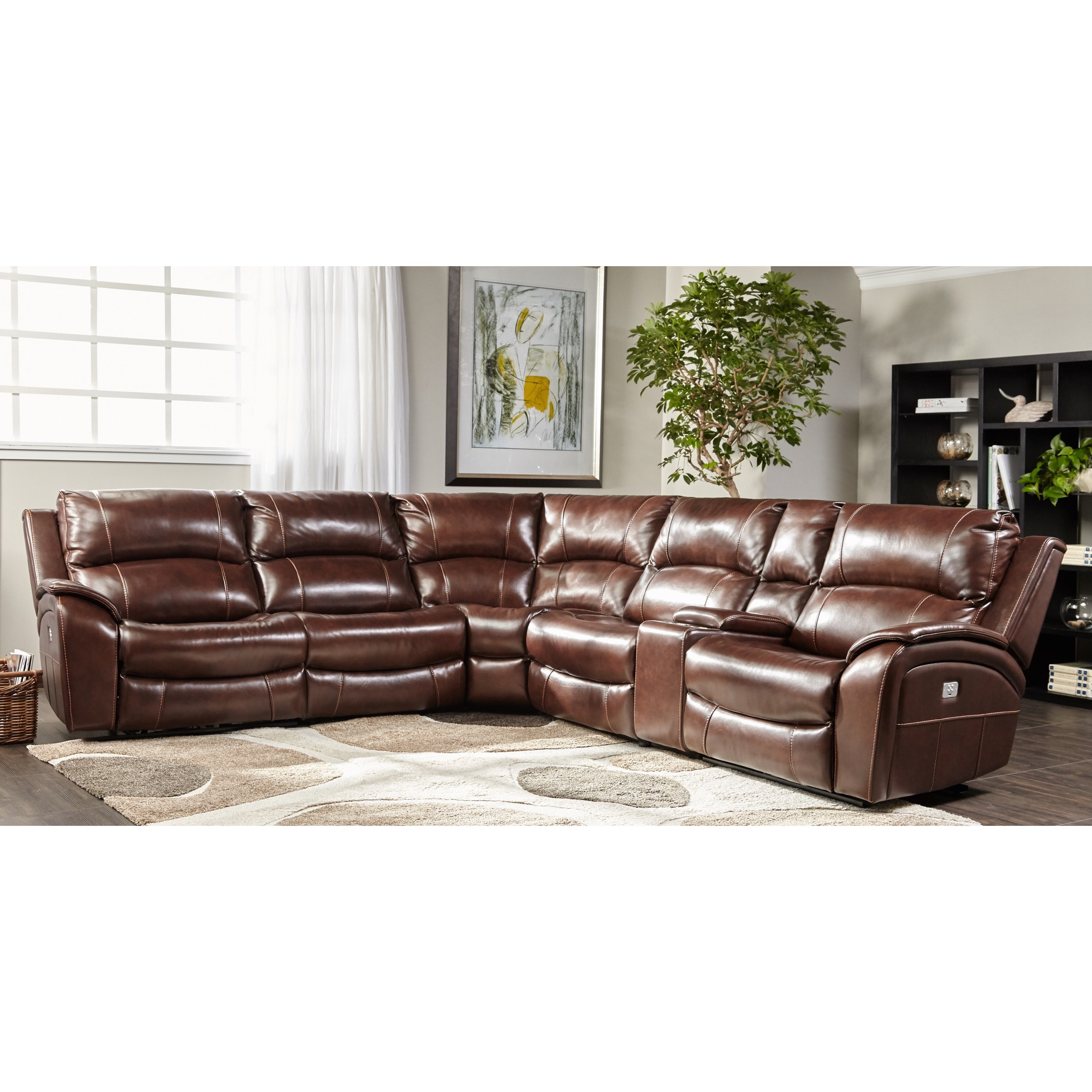 Brown Leather Match Power Reclining Sectional Sofa Brant