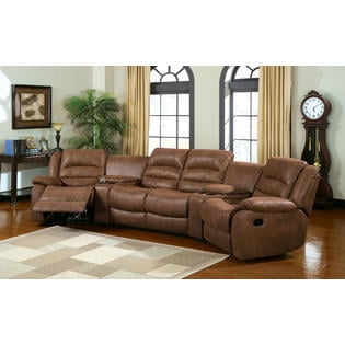 Recliner Sectional Sofa Brown Chenille Fabric Sectional Sectionals W 2 Console Couch Plush Comfort Living Room Furniutre